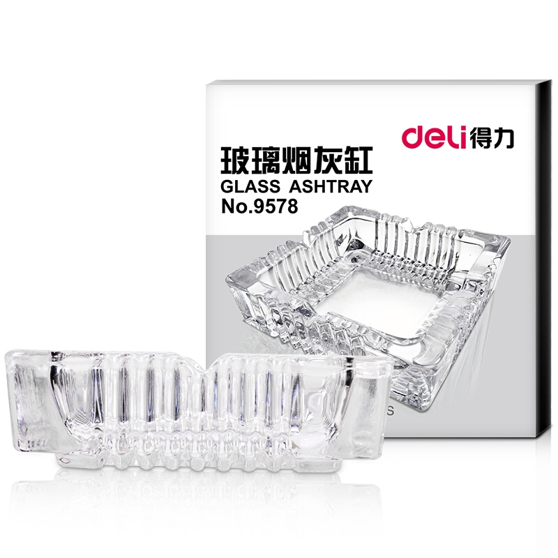 得力(deli)120*120mm中号欧式方形玻璃烟灰缸 茶几餐桌摆件 办公用品
