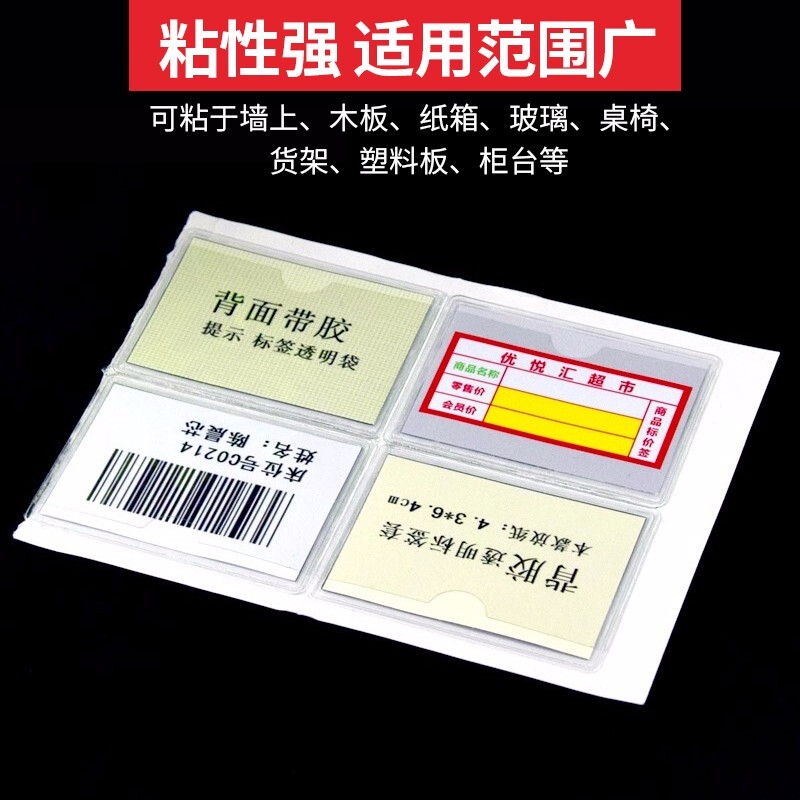 软膜物料卡套塑料标签袋自粘插卡片袋背胶标识卡套商品价签套 横款 5.2*3.8CM