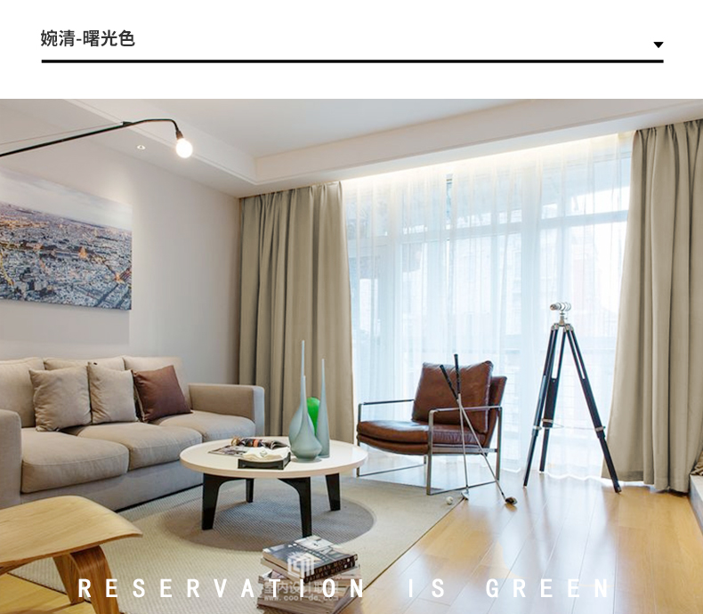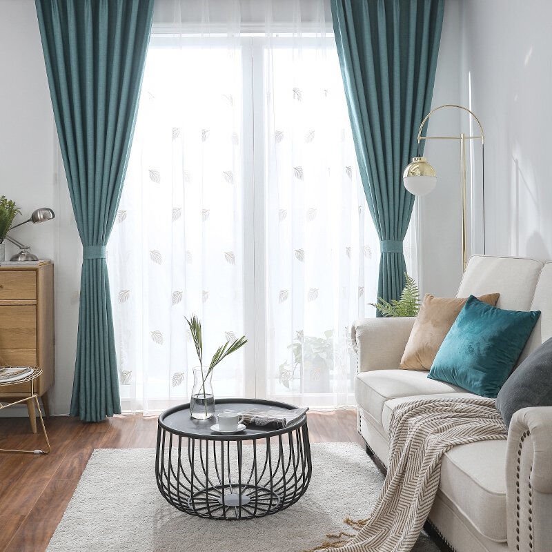 魔方 遮光现代窗帘成品简约北欧风格定制客厅卧室书房飘窗落地棉麻*婉清 婉清-3207-海蓝色 1米定制价