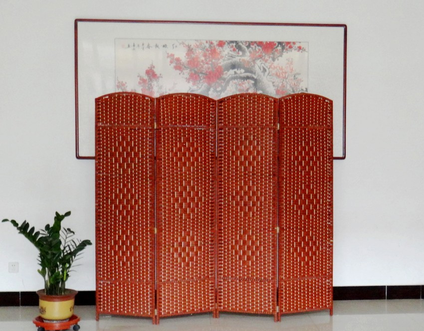 同林鸟酒店中式折叠草编屏风隔断时尚折屏客厅卧室餐厅移动屏风简易玄关(主图由4片组装) 1.8米高50厘米宽上下镂空-请备注颜色,三片起发