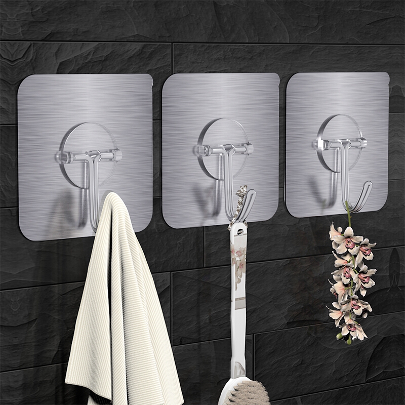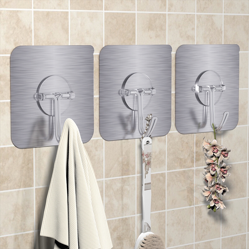 尚格兰 拉丝银无痕挂钩贴粘钩20只 强力免钉衣帽钩厨房浴室吸盘挂钩门后挂包钩(尊享款)