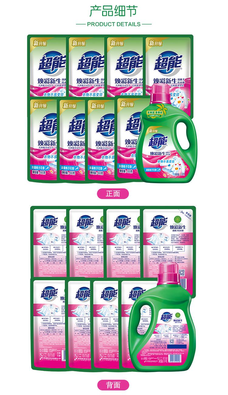 超能11斤套装:双离子洗衣液(焕彩新生)1.5kg+500g*8 整箱装(新老包装随机发货)