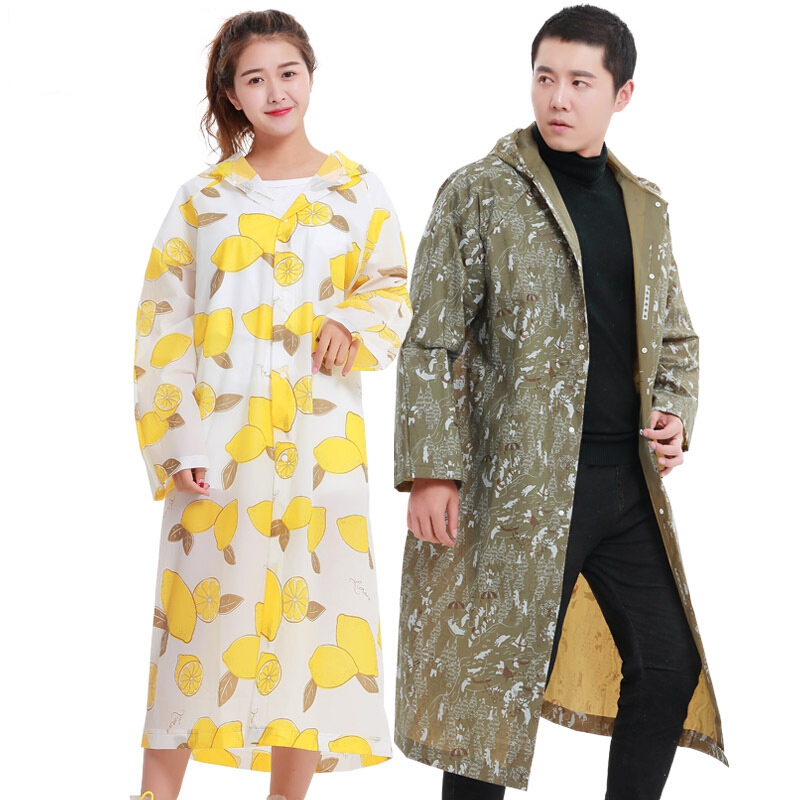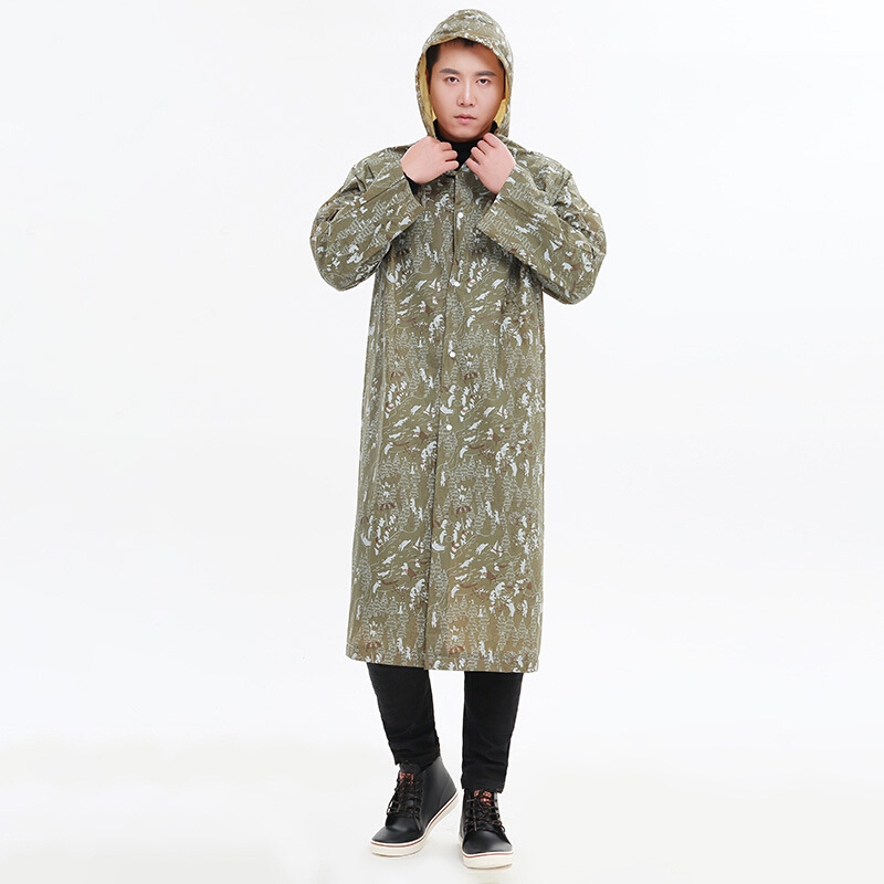 欣沁 成人非一次性雨衣户外旅行时尚雨披男女士长款带帽加厚 军绿熊