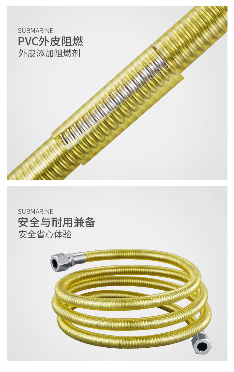 潜水艇(Submarine)R150-CC燃气管天然气液化气煤气4分304不锈钢波纹管 双快插宝塔接头 1.5米