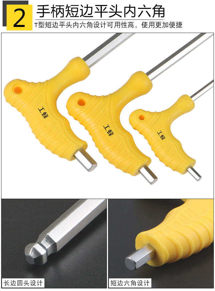 工蜂WS053-1G拐杖内六角扳手T型平头球头螺丝刀手动工具10mm单支装