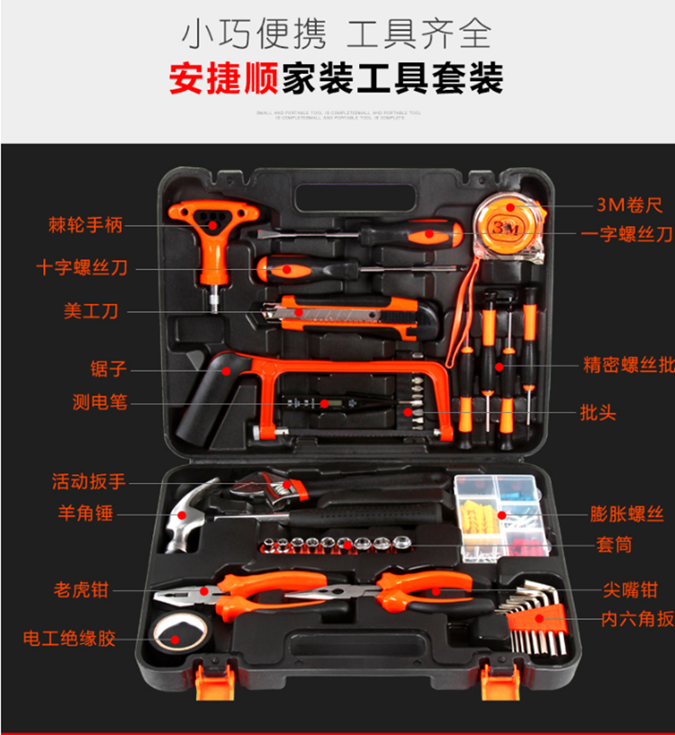安捷顺82件套多功能实用家用工具套装电工木工维修五金手动工具组套扳手套筒组合套装