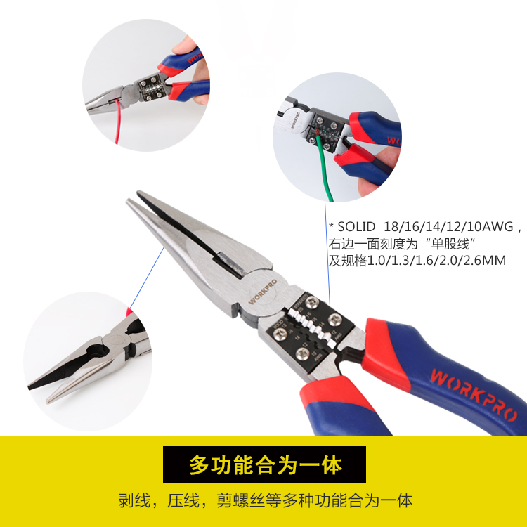 万克宝(WORKPRO)W031221N 钳子8寸尖嘴钳带剥线功能 尖口钳压线多功能尖咀钳电工钳断线钳