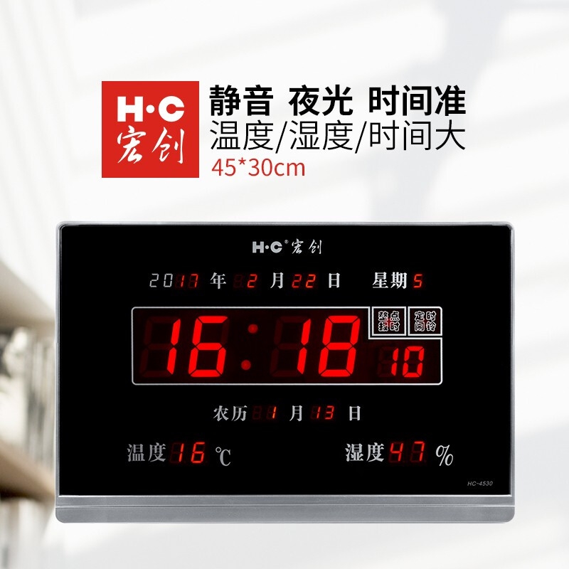 宏创(H.C)电子万年历电子钟 45*22*3cm